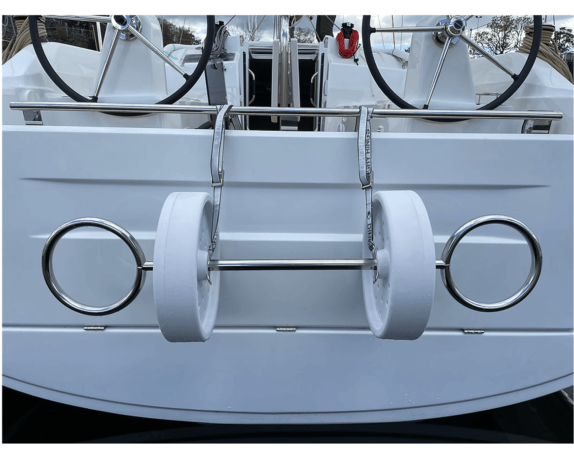 - Material: stainless steel pipes AISI 316L, 30/25 mm; UV-resistant polyester straps with marine-grade buckle; EVA foam spacer wheel