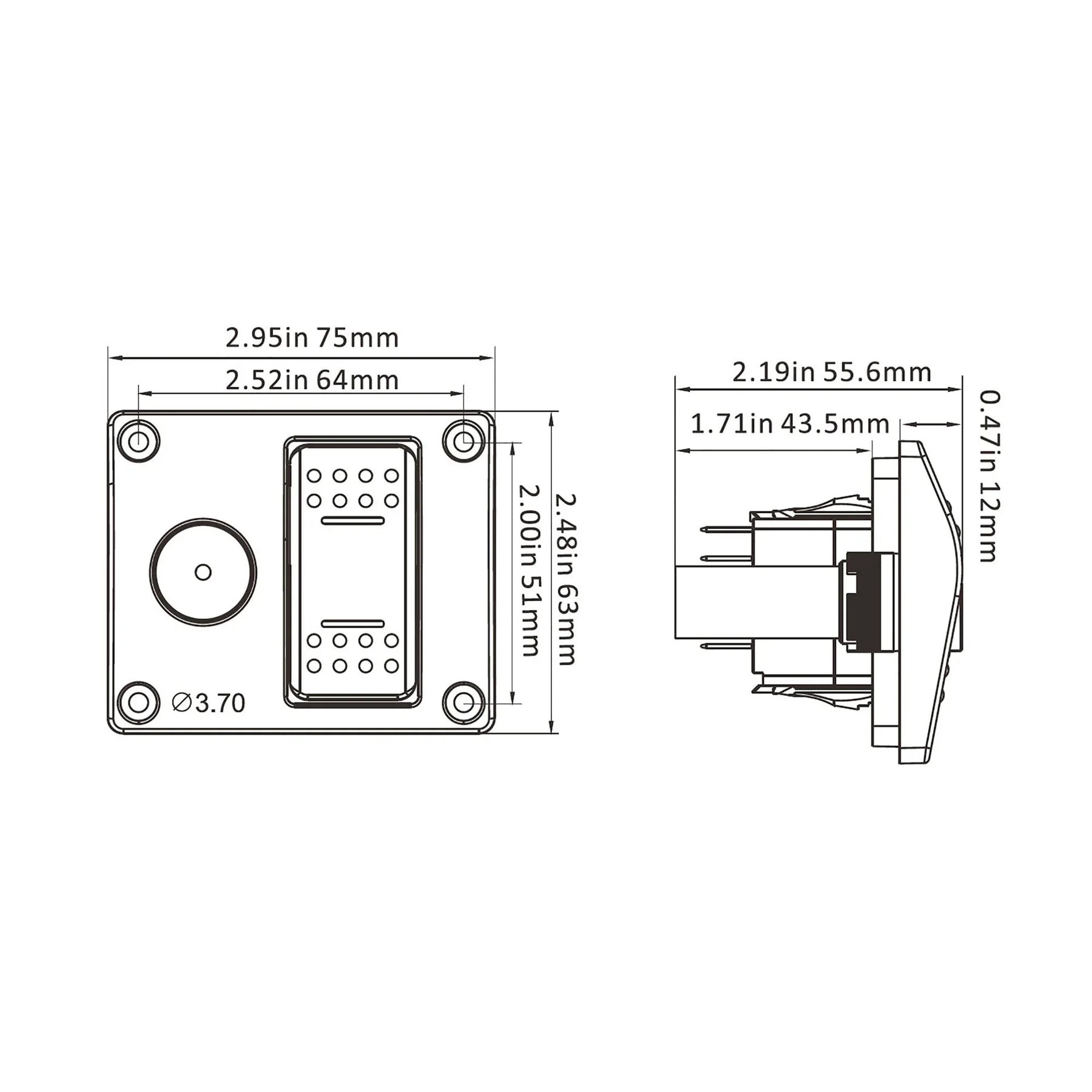 Compact 12V alarm switch panel for bilge systems, designed to pair with Seaflo electric-field bilge switches to deliver reliable audible and visual warnings.
