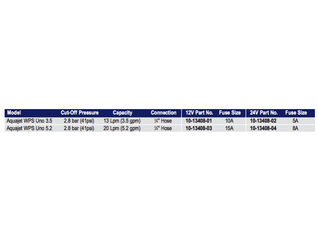 Built on the whisper quiet and pulsation-free Aqua Jet series Water Pressure Systems. The WPS units combine all the elements needed for ease of installation as well as built in pre-pressurised 2 litres accumulator tank and inline strainer. The new base design allows for installation in both vertical and horizontal position making the pump a true saving unit especially suited for todayβs modern marine needsΒ