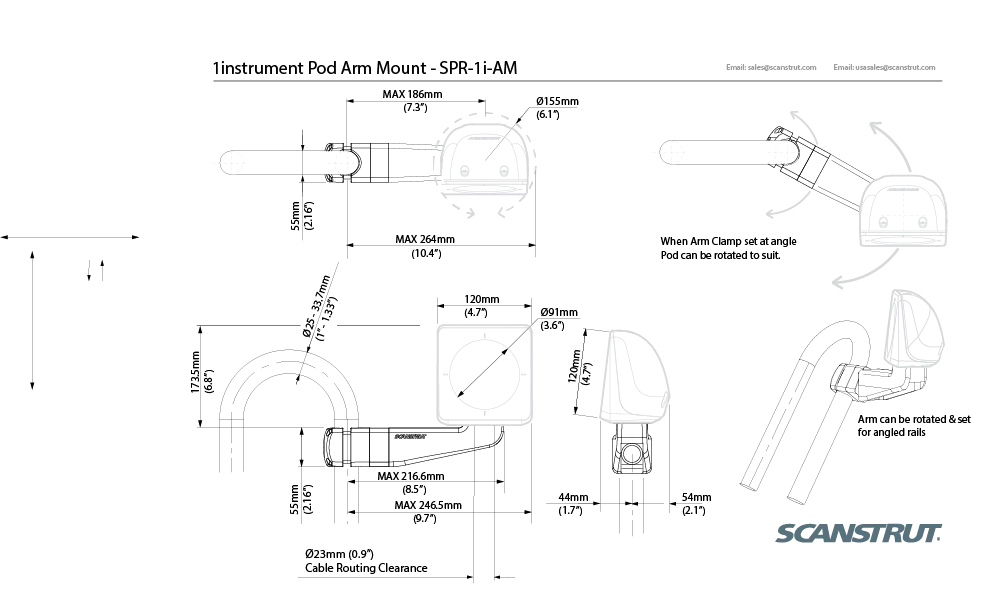 Scanstrut Arm Arm Arm Pod for 1 standard instrument | 4Boats