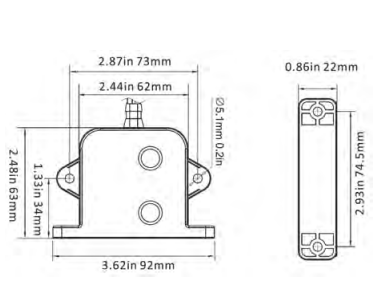 • Activates at 41 mm (1.6 in); deactivates at 9.5 mm (0.37 in)