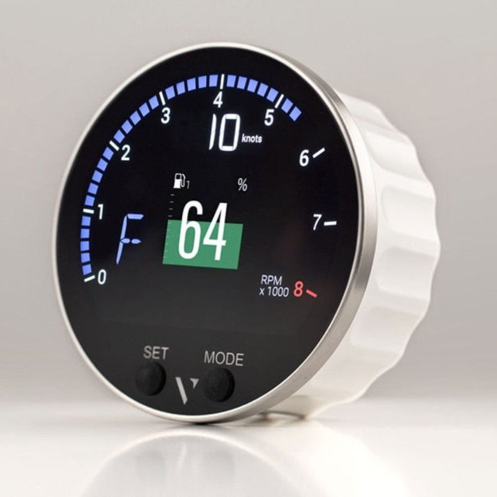 The VMH 35 is a compact round multi-function display designed for small to mid-sized outboard boats. It features an integrated high-performance GNSS receiver, an analog-to-NMEA 2000 gateway (NMEA 2000 certified), IPX7 waterproofing, and a sunlight-readable colour hybrid screen in a low-profile black-glass housing. Ideal for vessels seeking a compact, readable instrument with simple installation.