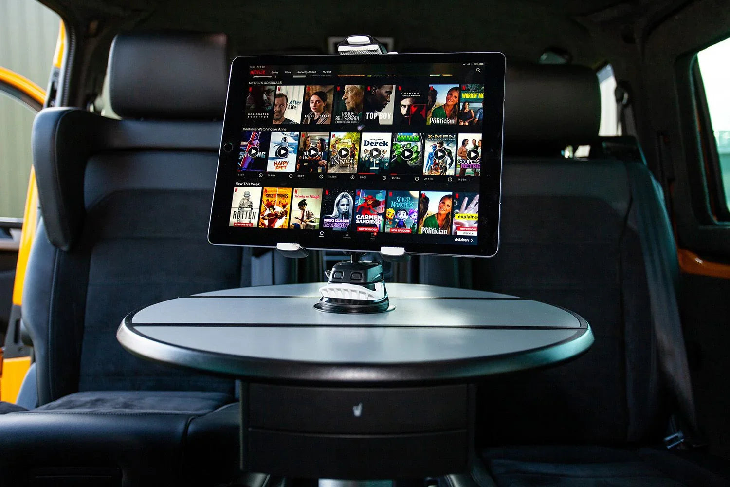 • Includes: suction cup base, adjustable arm and universal tablet clamp